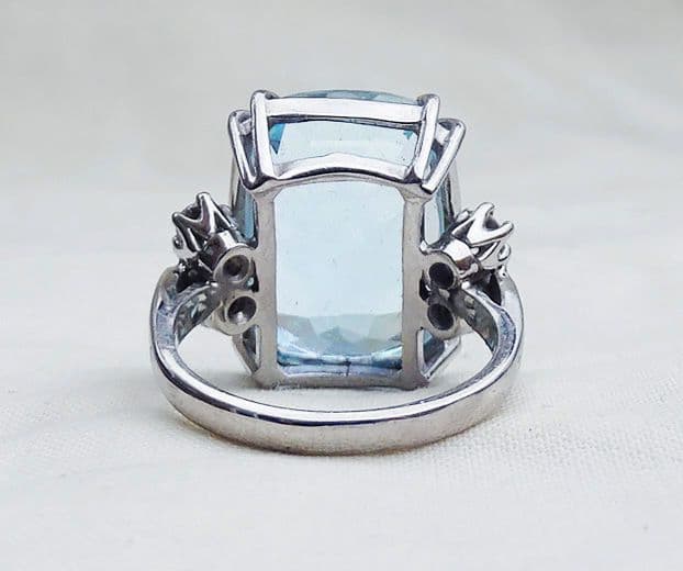 Fabulous art deco 18ct 18k white gold 17ct emerald cut aquamarine and diamond vintage antique ring