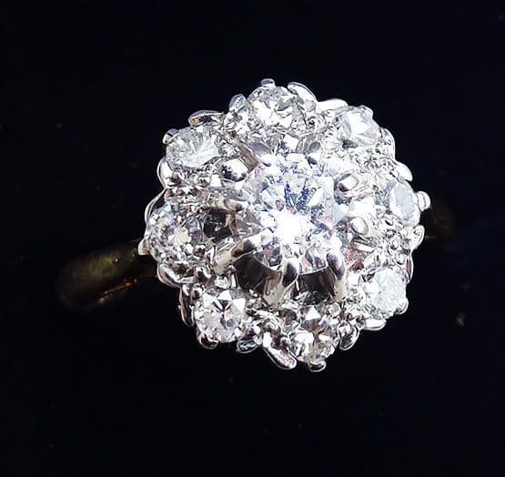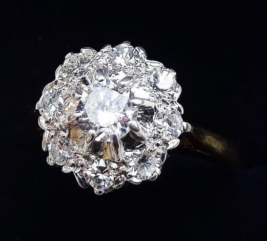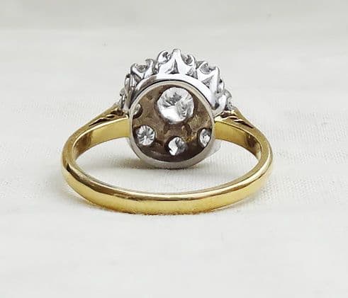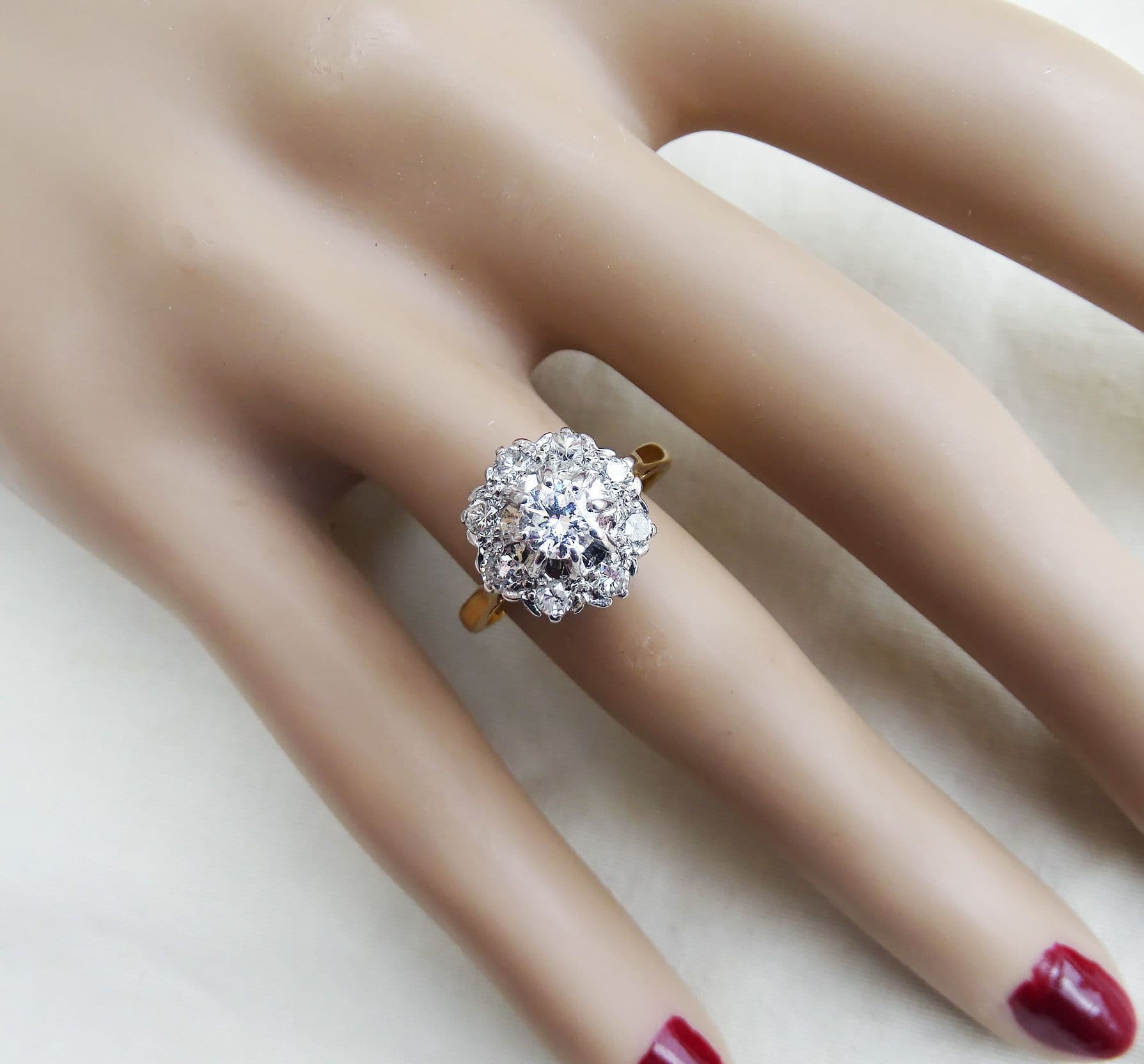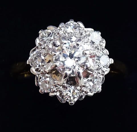 Gorgeous art deco 18ct and 18k white gold 0.74ct diamond cluster vintage antique ring