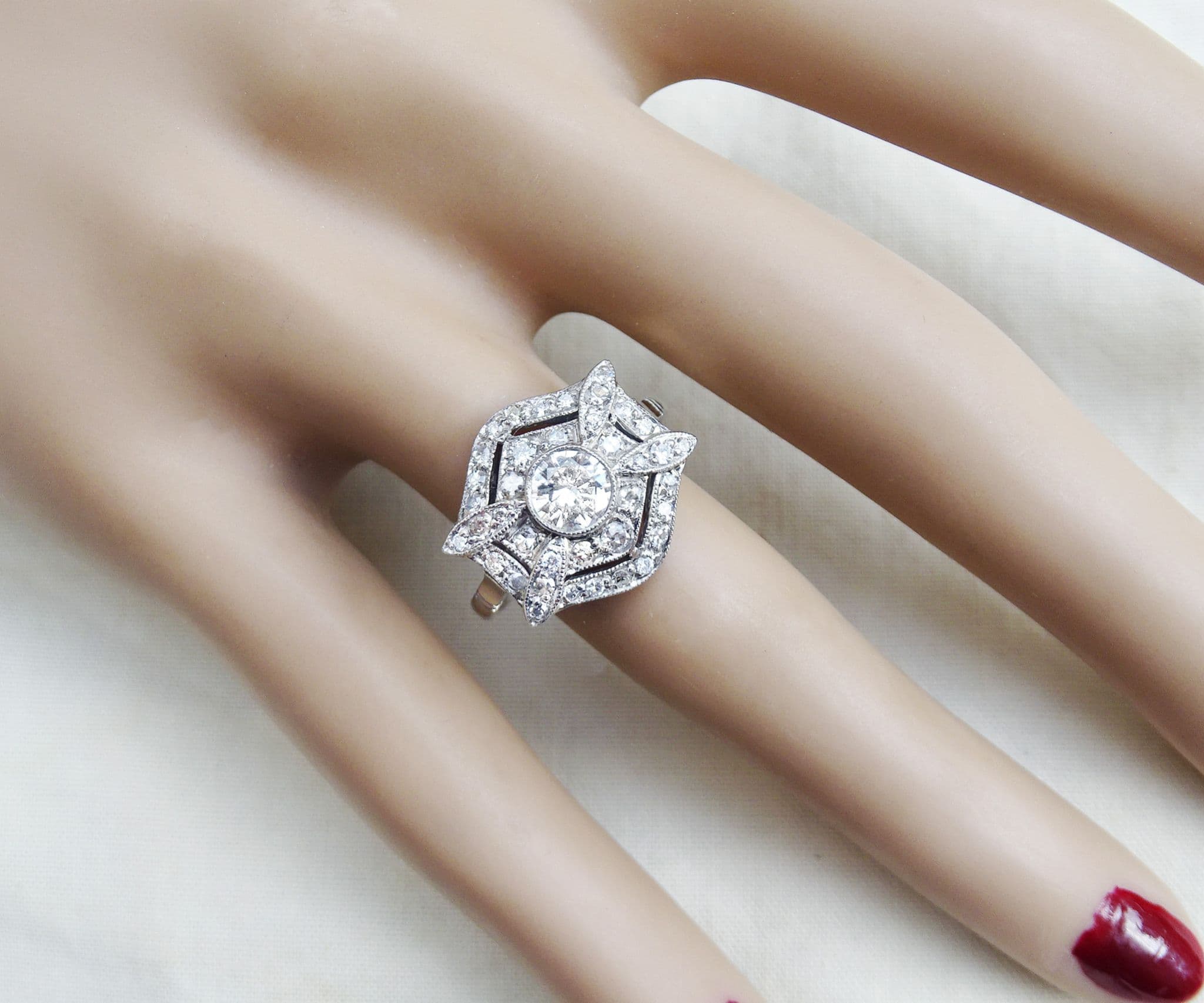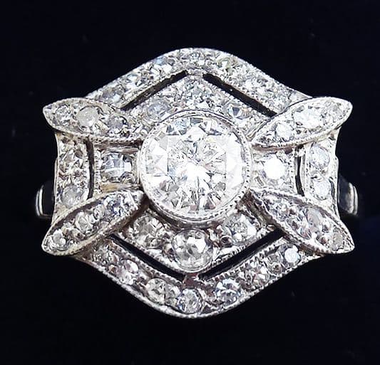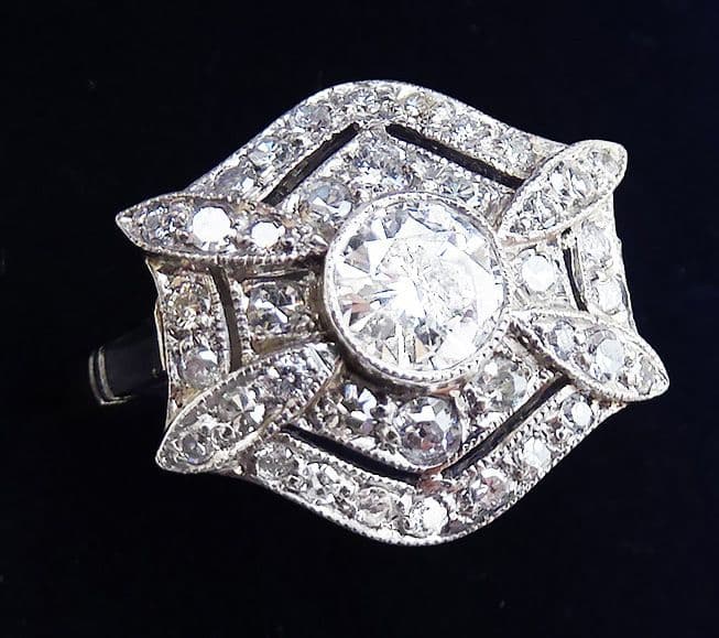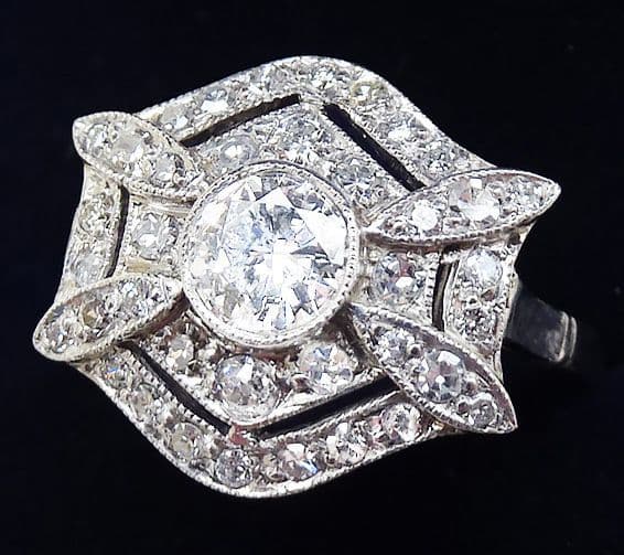 Gorgeous art deco platinum 1.10ct diamond vintage antique cluster ring